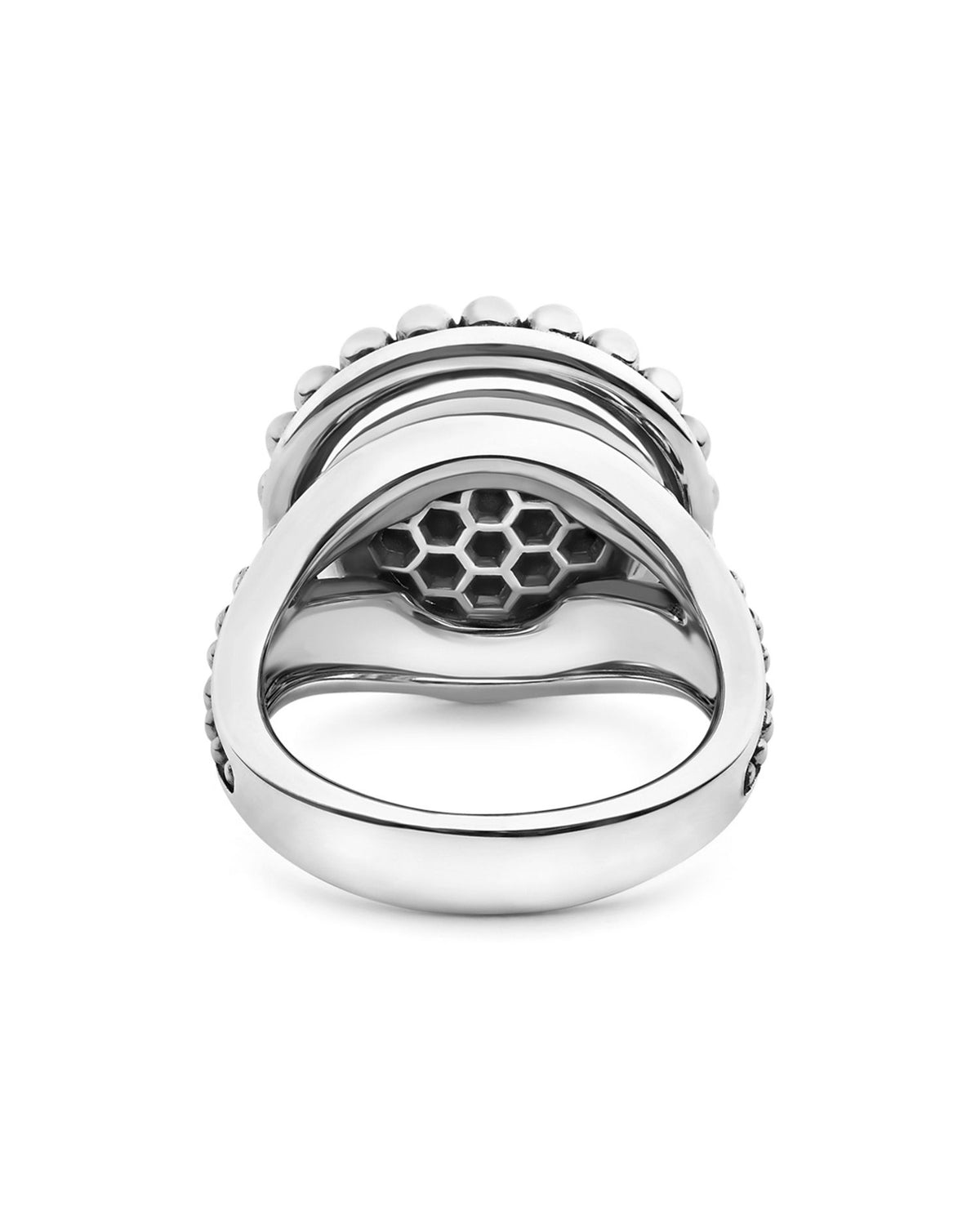 Crafted with sterling silver and a light blue ceramic top. Features Caviar beading. Note: Some silver jewelry may be surface-coated with rhodium for enhanced shine.