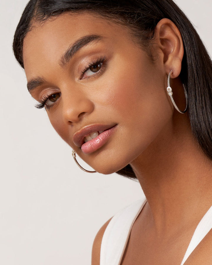 18K Yellow Gold & Sterling Silver Newport Diamond Knot Large Hoop Earrings