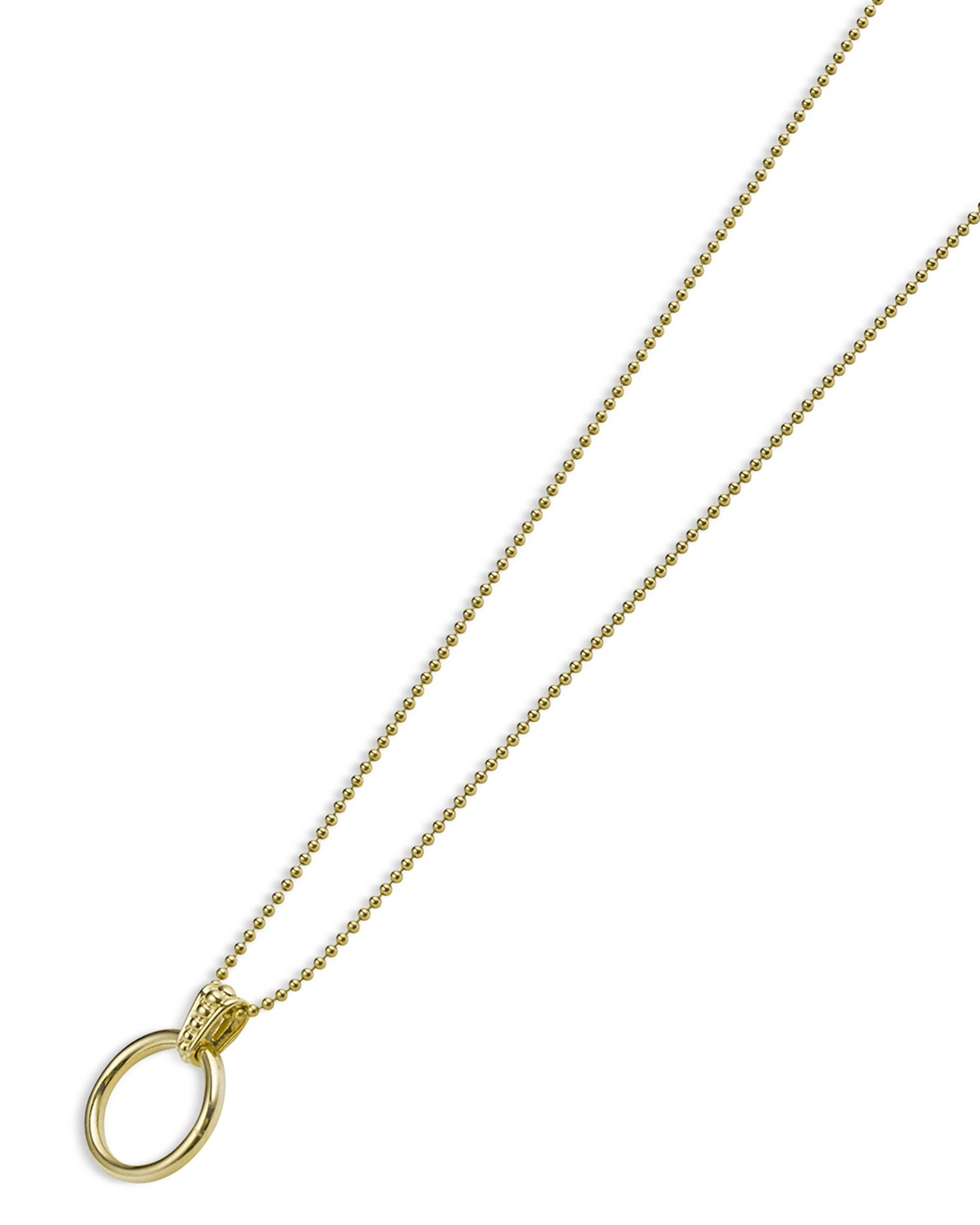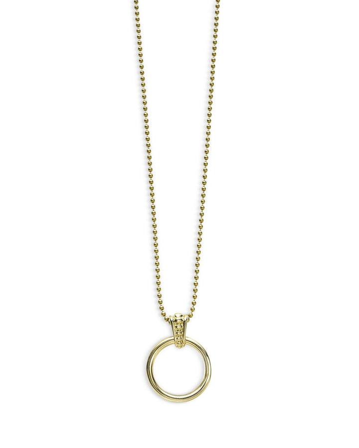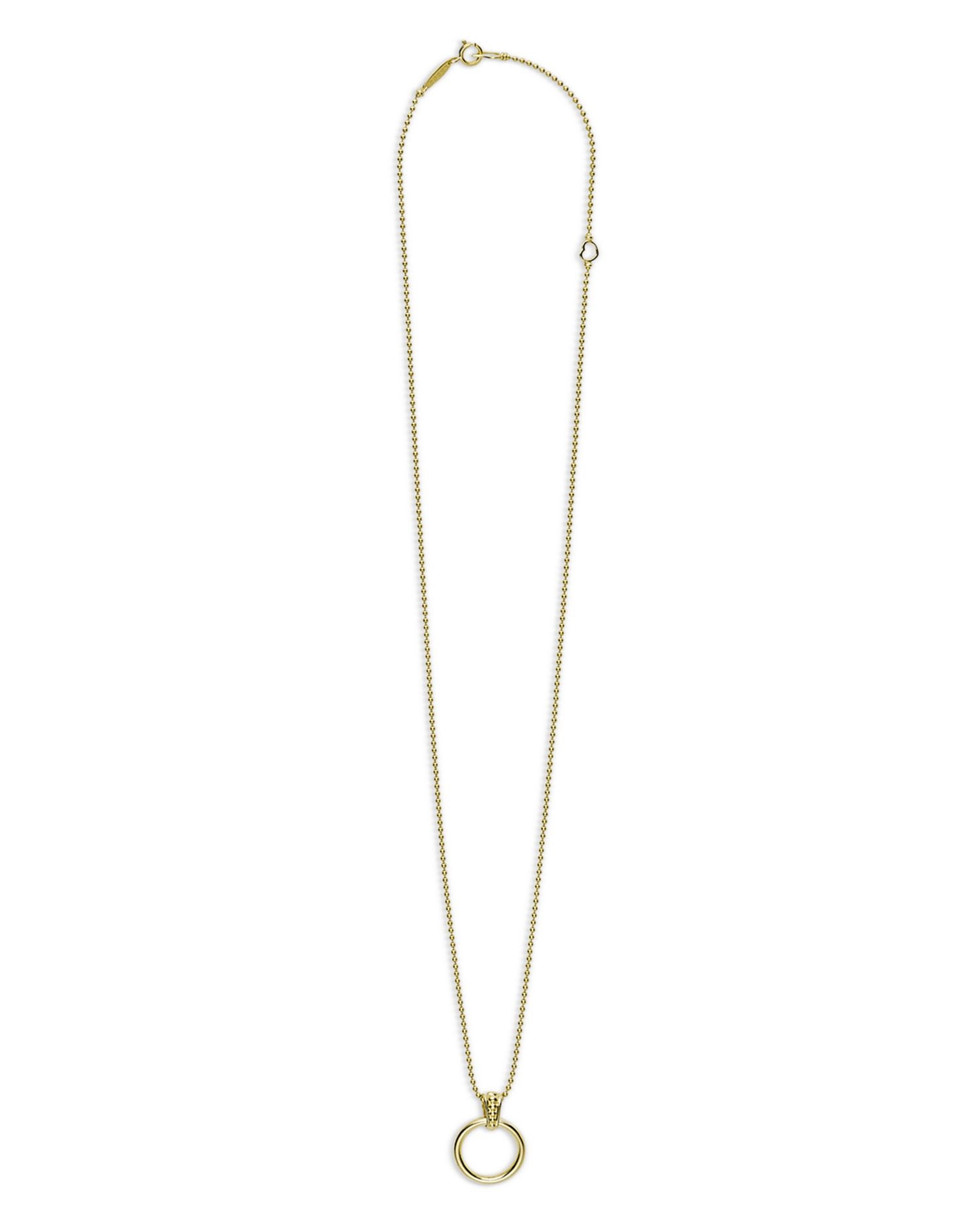 This 18K Gold Meridian Circle Pendant Necklace by LAGOS is a refined piece from the Meridian collection. The 18K gold circle pendant, accented with signature Caviar beading, hangs elegantly on a ball chain, making it a versatile addition to any jewelry collection.