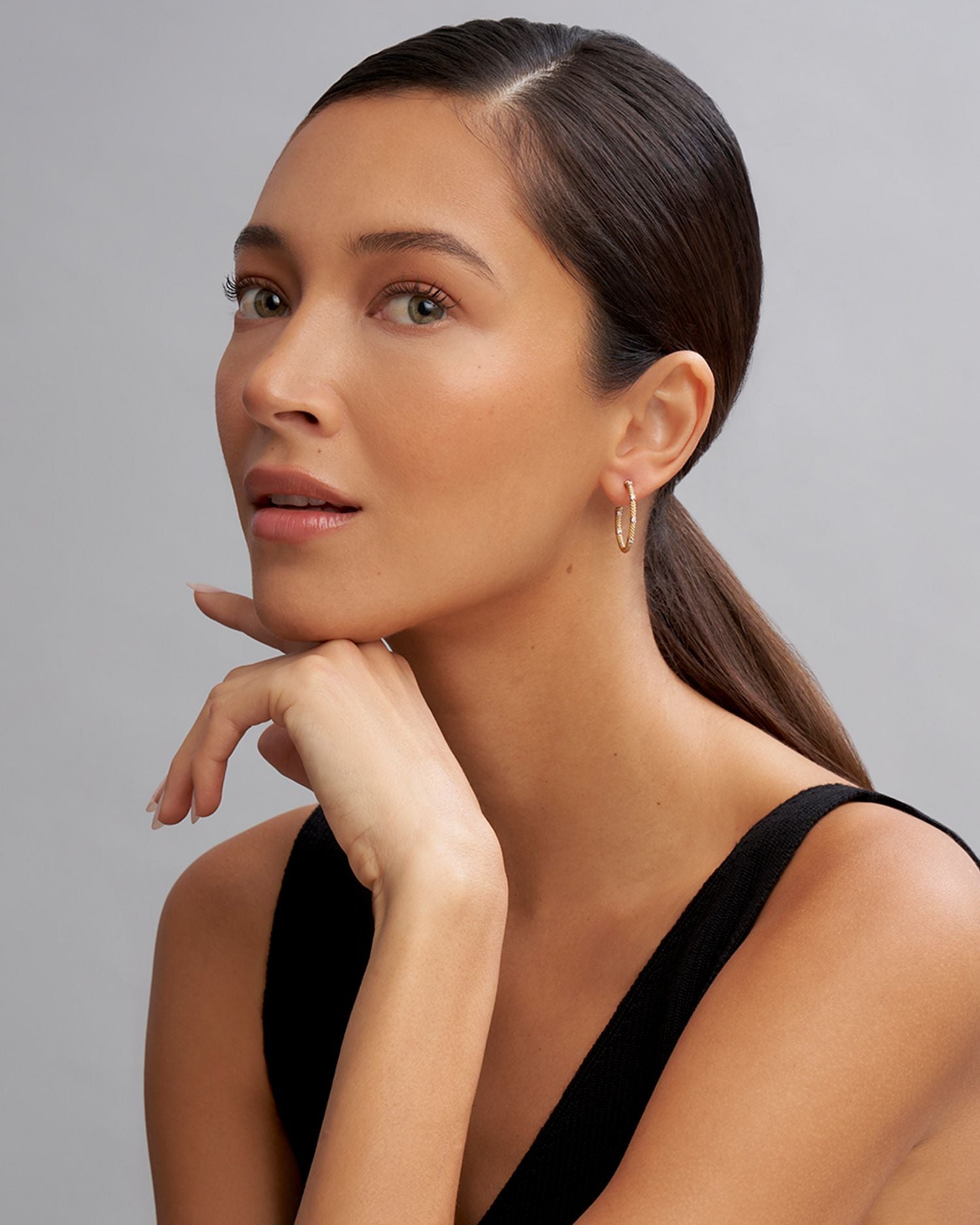 18K White & Yellow Gold Caviar Diamond Hoop Earrings