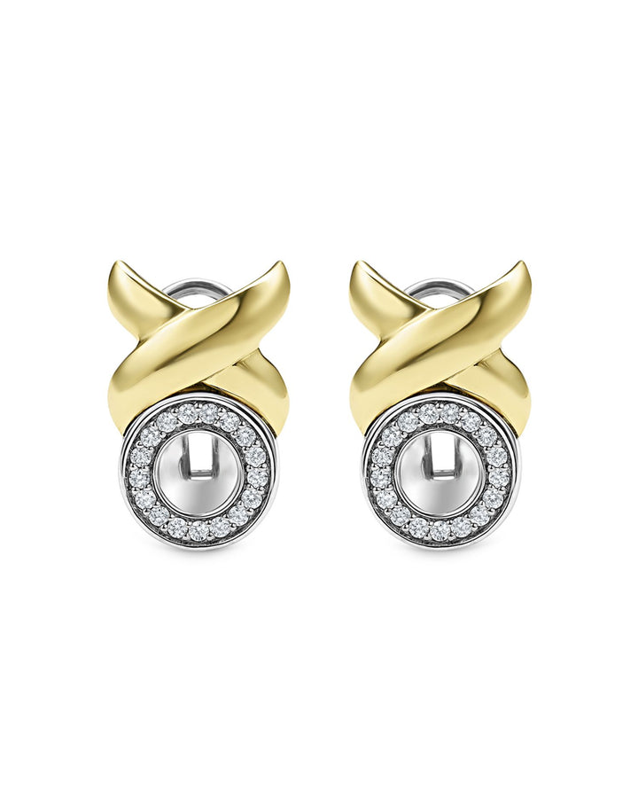18K Yellow Gold & Sterling Silver Embrace Diamond XO Omega Earrings