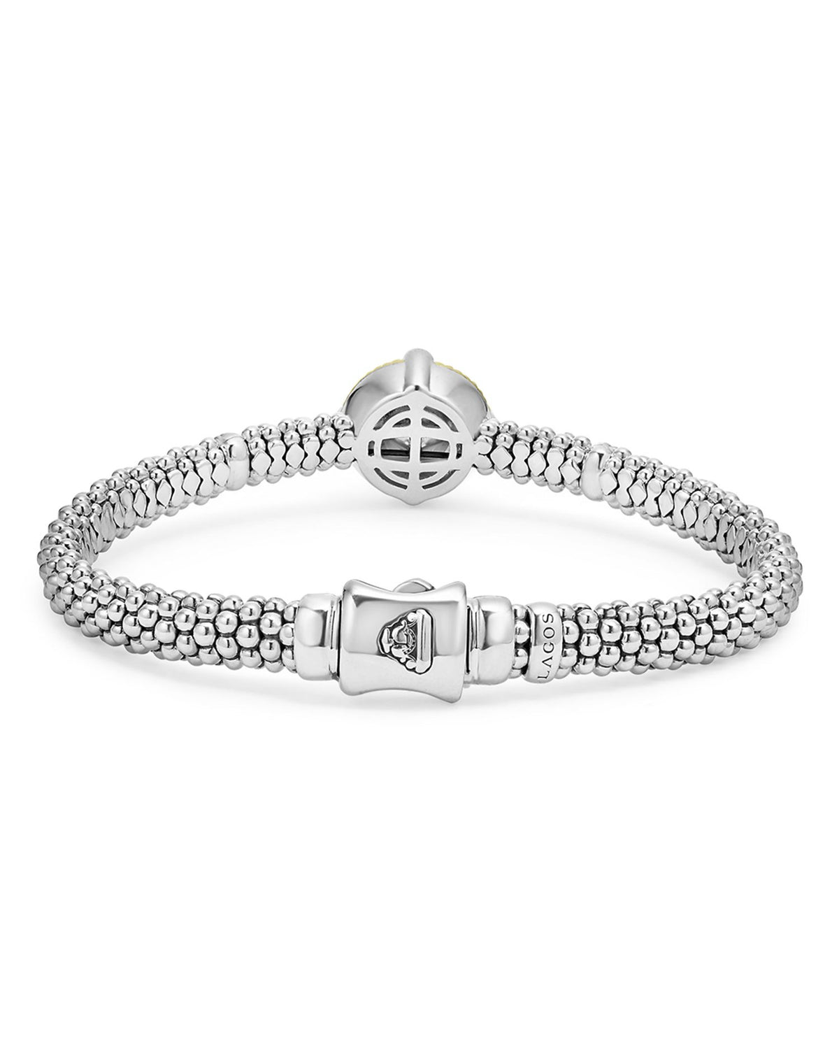 This 18K Yellow Gold & Sterling Silver Luna Cultured Freshwater Pearl & Diamond Caviar Bead Bracelet by LAGOS is an elegant piece from the Luna collection. Featuring a radiant cultured freshwater pearl at its center, accented with glistening diamonds and Caviar beading, this bracelet is a timeless and luxurious addition to your collection.