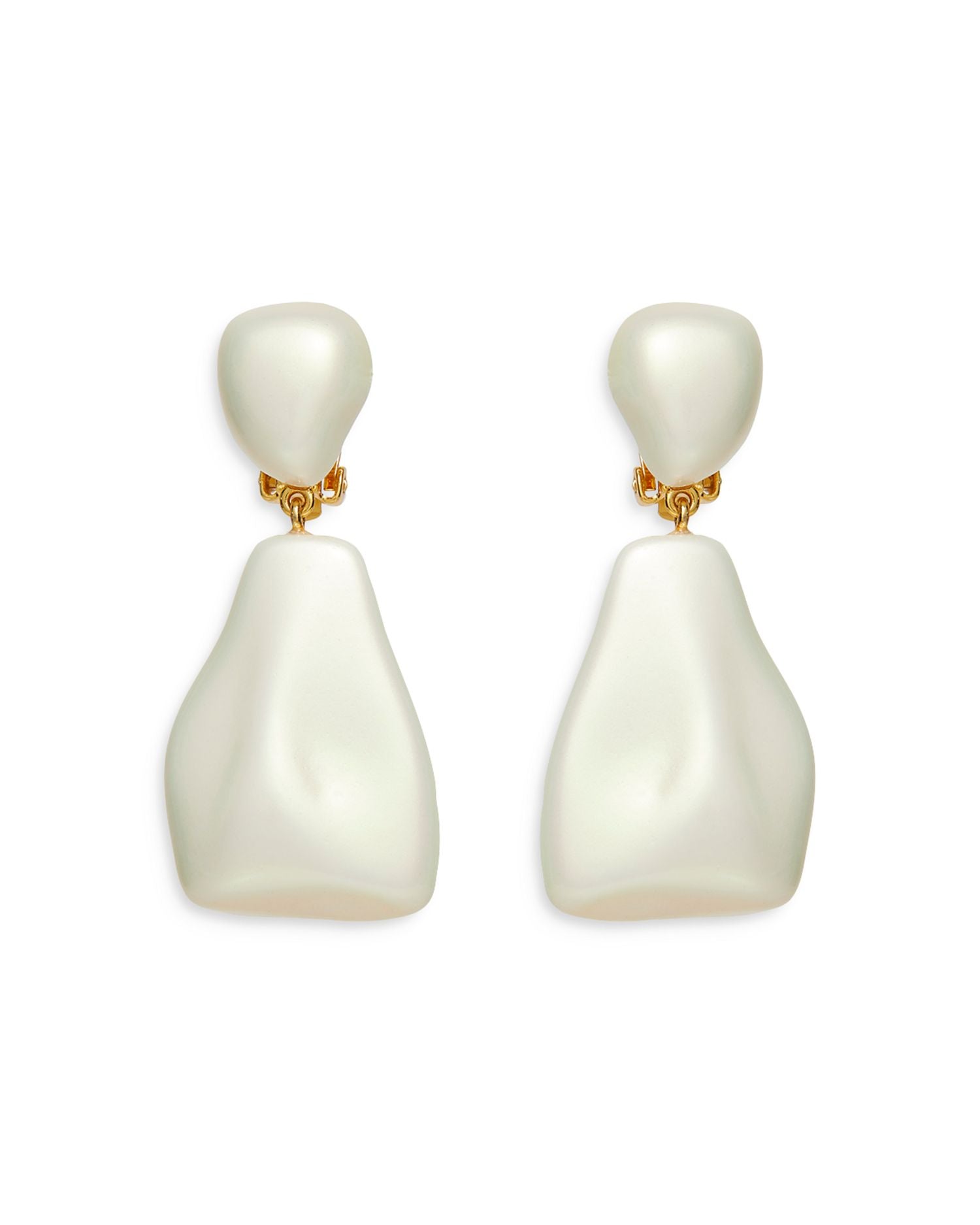 Crafted in 14K gold-plated brass with resin or glass imitation pearls. Dimensions: 2.25'L x 1'W. Secured with post back closures.