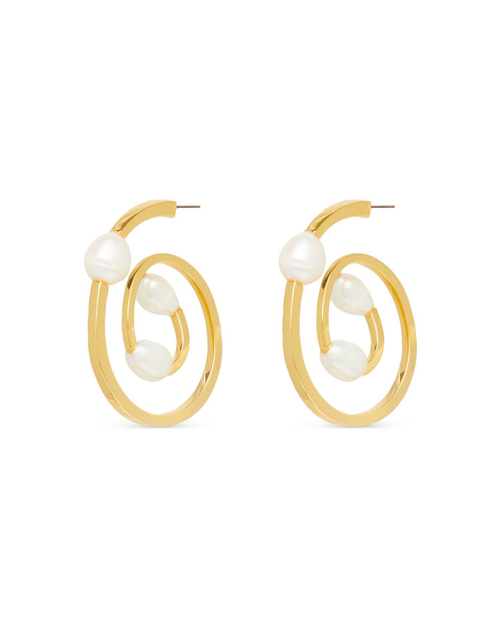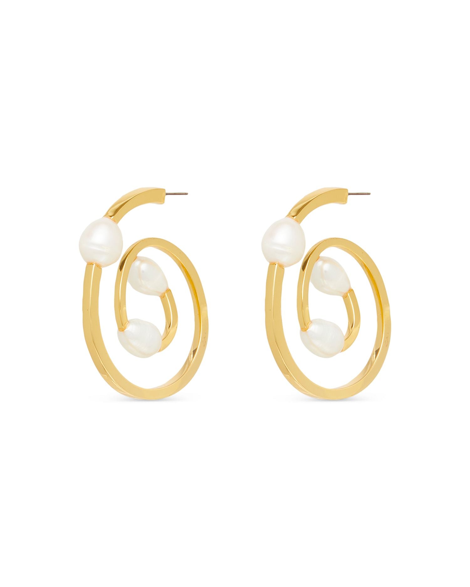 These Imitation Pearl Spin Skater Hoop Earrings by Lele Sadoughi are a statement-making accessory. Featuring oversized hoops accented with glass pearls, these earrings add dynamic movement and style to your look.