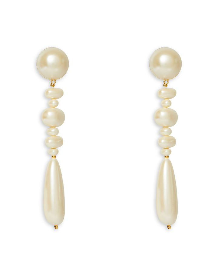 Copacabana Imitation Pearl Linear Drop Earrings in Gold Tone