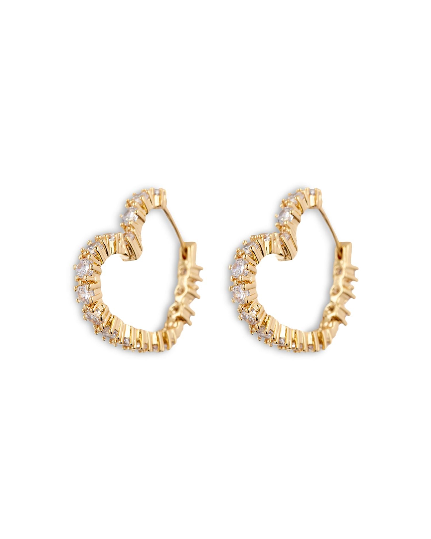 These Crystal Heart Bijoux Hoop Earrings by Luv Aj are a playful and charming accessory. Featuring cubic zirconia heart accents on petite hoops, these earrings bring a romantic sparkle to your jewelry collection.