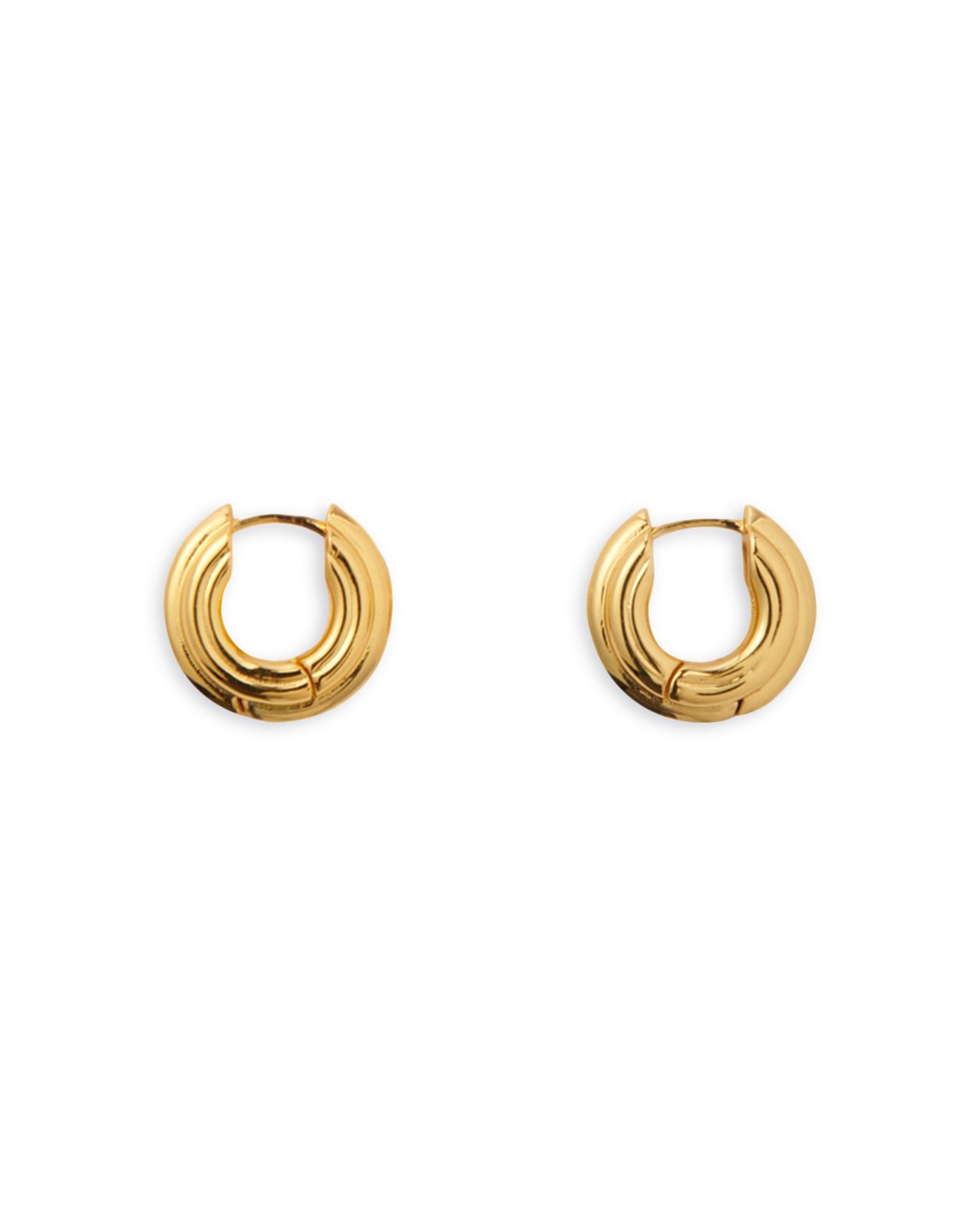 Crafted in gold-plated brass. Dimensions: 0.7'L. Secured with post back closures.