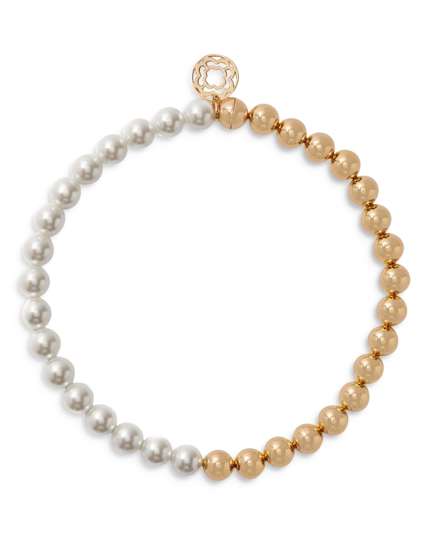 Made from gold-tone metal with glass beads. Length: 14". Secured with a magnetic closure.