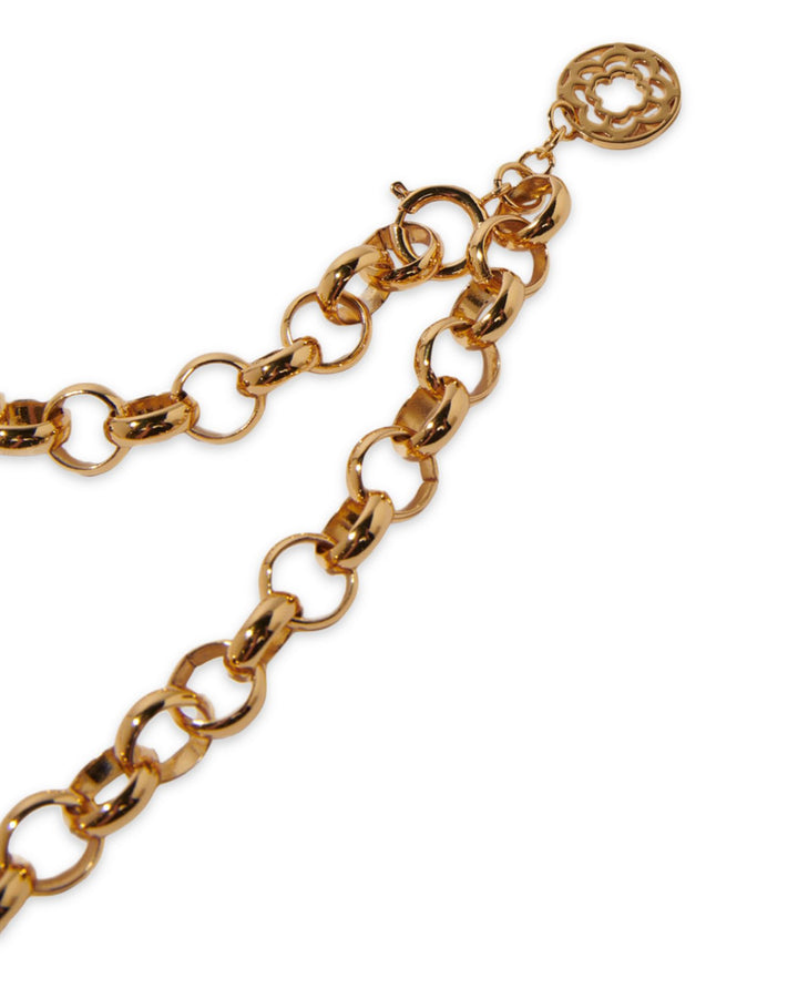 This Clover Medallion Chunky Collar Necklace by Maje is a bold and stylish statement piece. Featuring a polished gold-tone medallion with clover-inspired details, this chunky collar necklace adds a contemporary edge to your look.