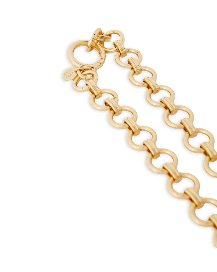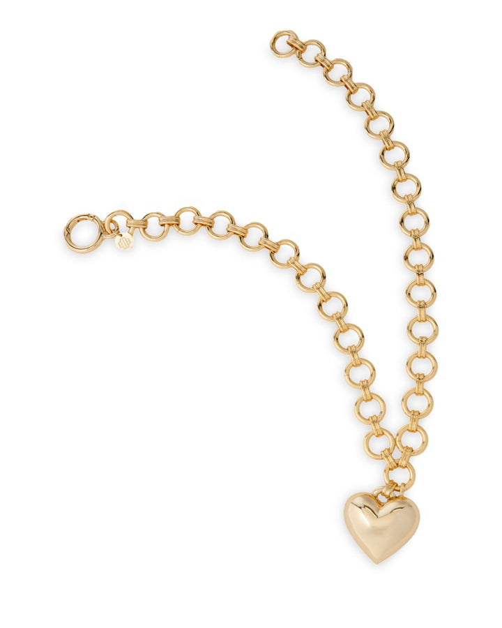 This Heart & Rhinestone Large Link Pendant Necklace by Maje is a bold and romantic statement piece. Featuring a heart-shaped pendant adorned with rhinestones, suspended on a large-link chain, this necklace adds a touch of charm and elegance to your look.