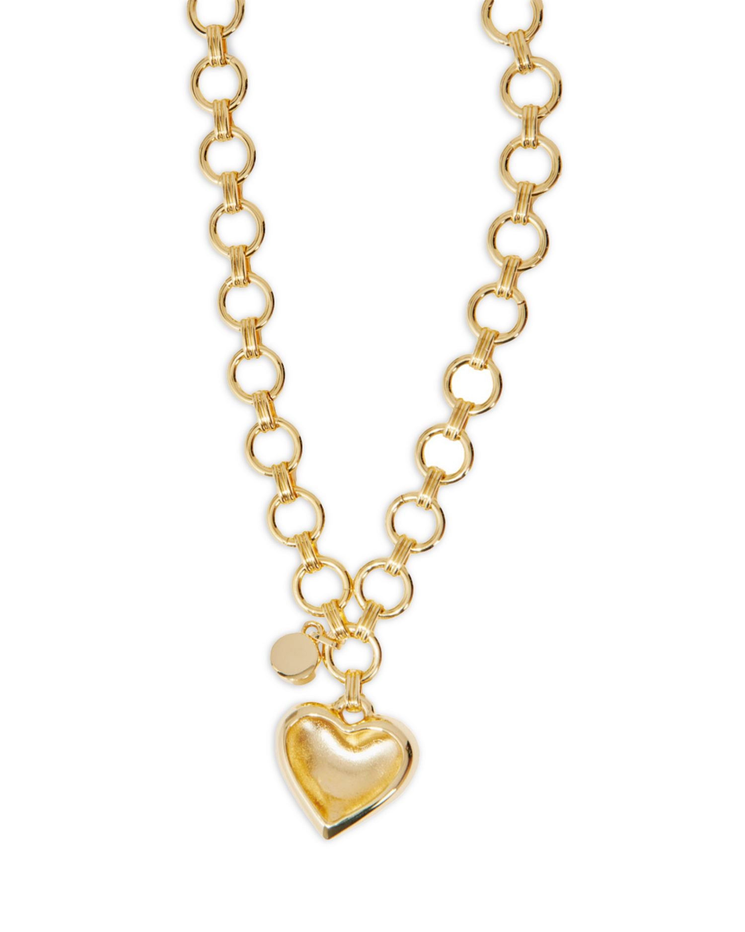 Heart & Rhinestone Large Link Pendant Necklace, 18.5'
