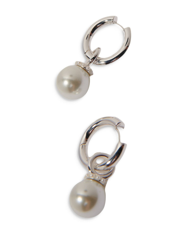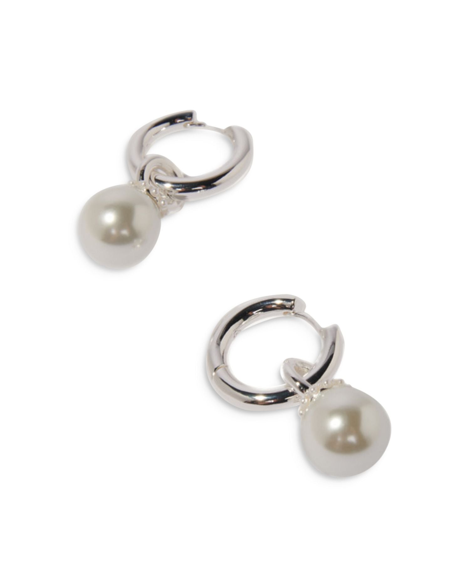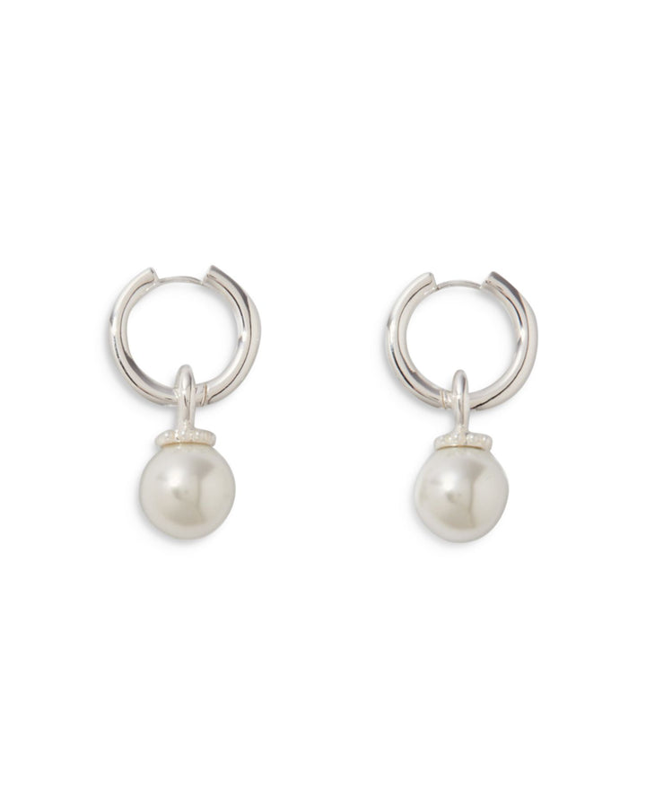 These Imitation Pearl Huggie Hoop Earrings by Maje are a chic and timeless design. Featuring glass pearls on polished hoops, these earrings bring a refined elegance to any outfit, perfect for both everyday wear and special occasions.