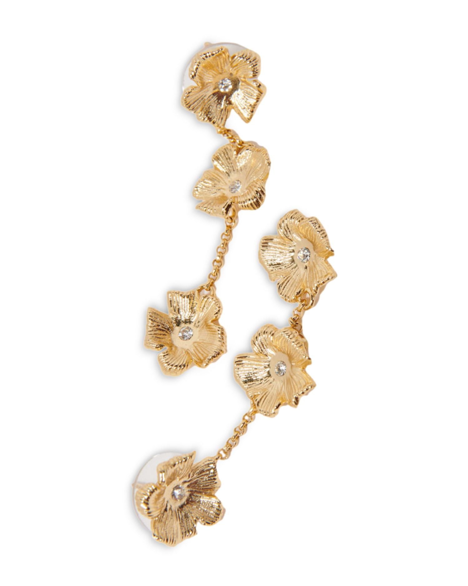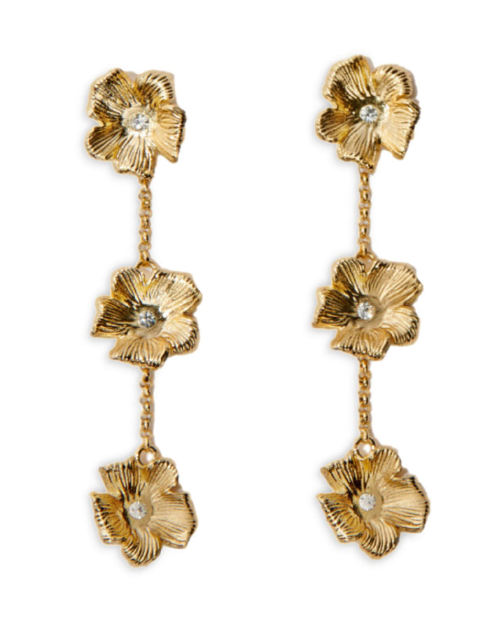 These Stone Accented Flower Cascade Drop Earrings by Maje are a bold and artistic statement piece. Featuring cascading floral motifs with sparkling glass accents, these earrings are perfect for adding a dramatic touch to your look.