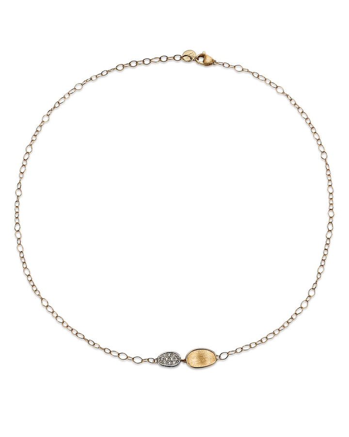 Crafted in 18K yellow and white gold with diamonds totaling 0.09 carats. Length: 16.5'. Secured with a lobster clasp closure. Note: White gold may be rhodium-coated for enhanced shine. Made in Italy.