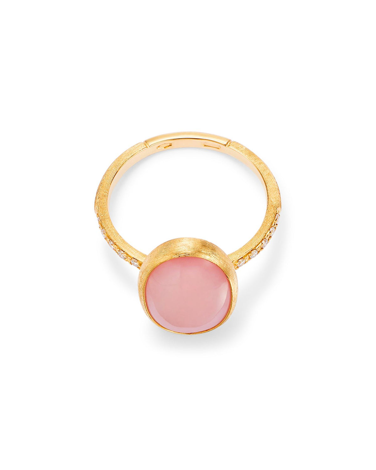 This 18K Yellow Gold Siviglia Opal & Diamond Oval Ring by Marco Bicego is an exclusive statement piece from the Siviglia Color collection. Featuring a vibrant opal accented with diamonds, this ring is a celebration of color and artisanal craftsmanship inspired by the charm of Italian summers.