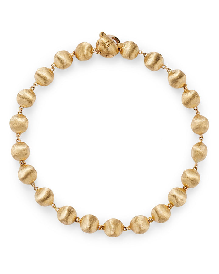 This 18K Yellow Gold Africa Bead Bracelet by Marco Bicego is a sophisticated design from the Africa collection. Featuring hand-engraved gold beads in a chic link design, this bracelet captures the elegance of modern craftsmanship inspired by the rich landscapes of Africa.