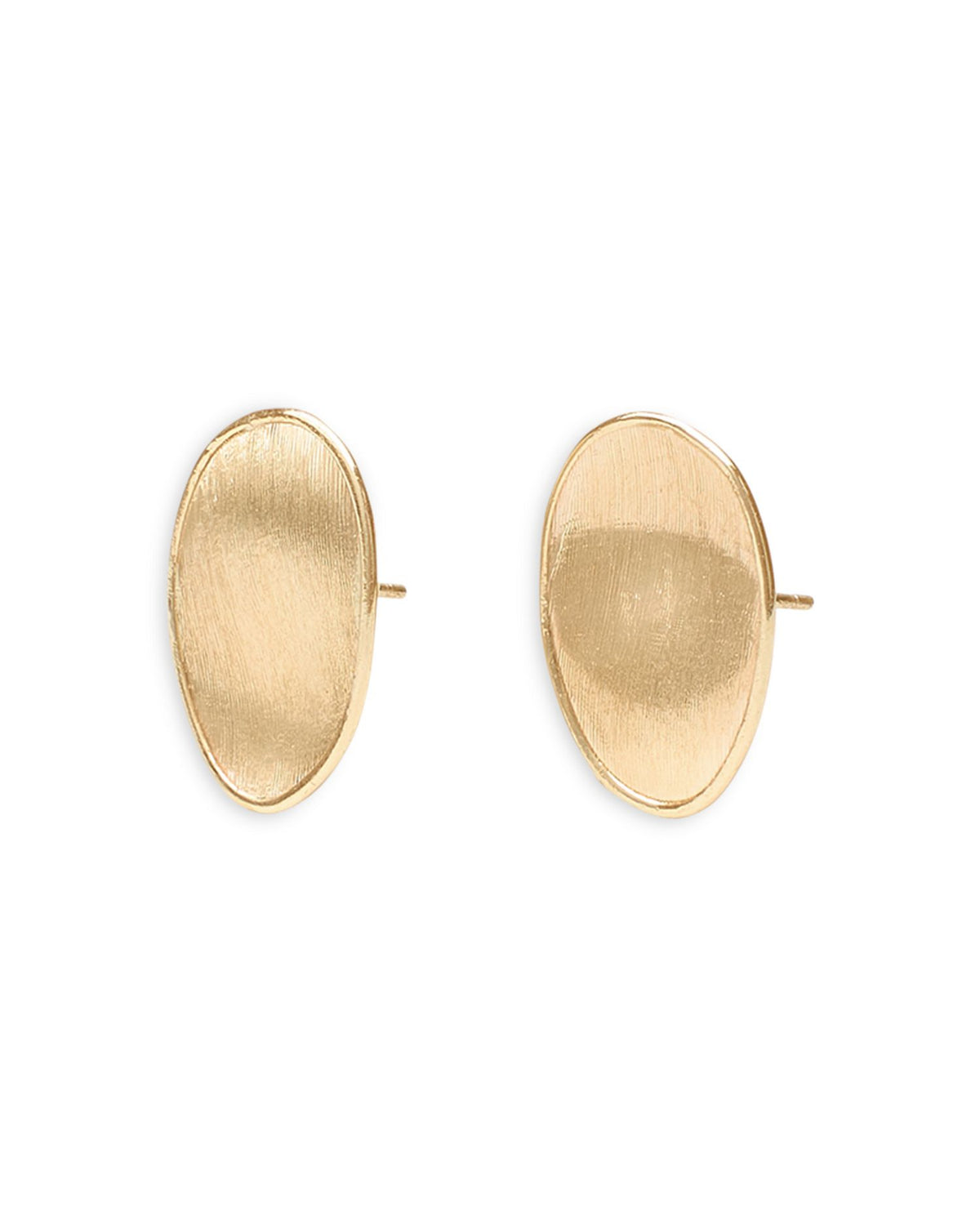 These 18K Yellow Gold Lunaria Oval Stud Earrings by Marco Bicego are a timeless addition to the Lunaria collection. Featuring softly textured gold ovals, these earrings exude understated elegance and luxurious craftsmanship.