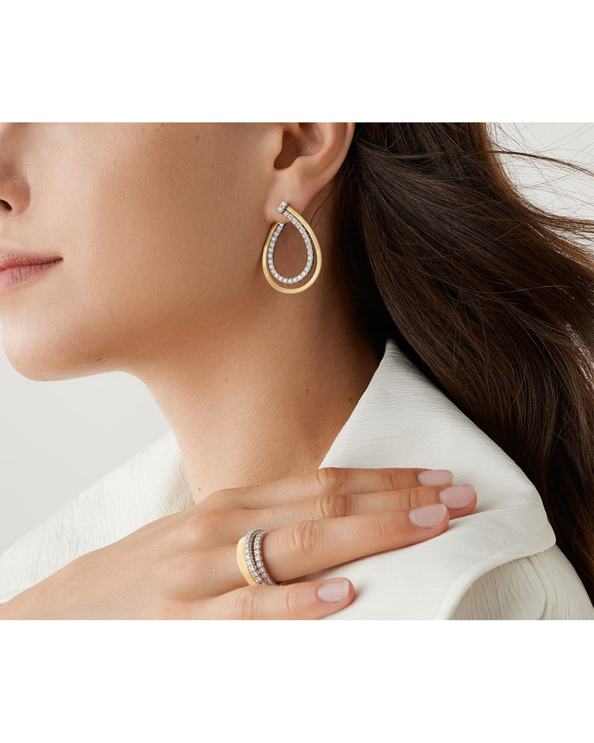 18K Yellow & White Gold Masai Diamond Pear Double Spiral Hoop Earrings