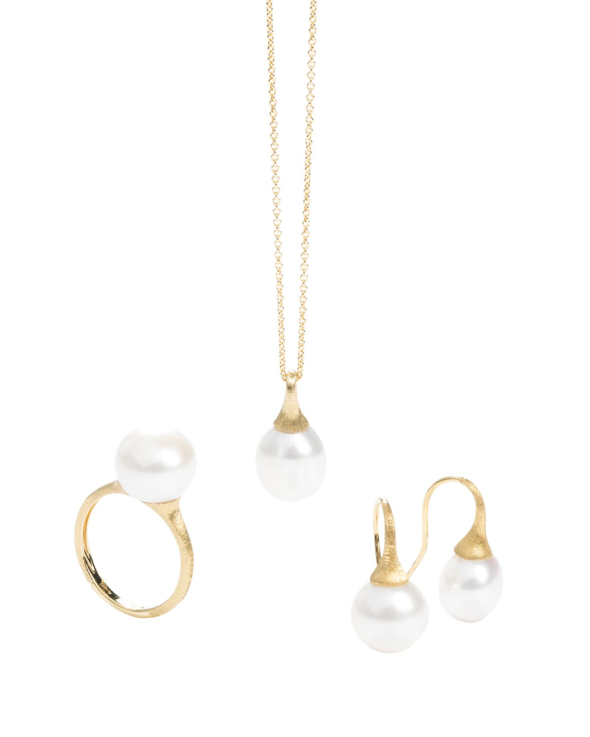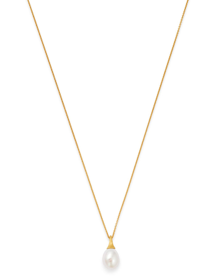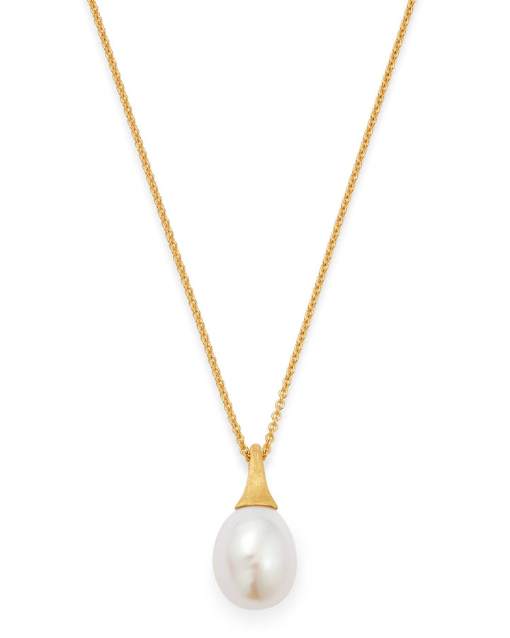 This 18K Yellow Gold Africa Cultured Freshwater Pearl Pendant Necklace by Marco Bicego is a delicate and elegant design from the Africa collection. Featuring a luminous cultured freshwater pearl suspended from a gold bail, this necklace brings timeless sophistication to your wardrobe.