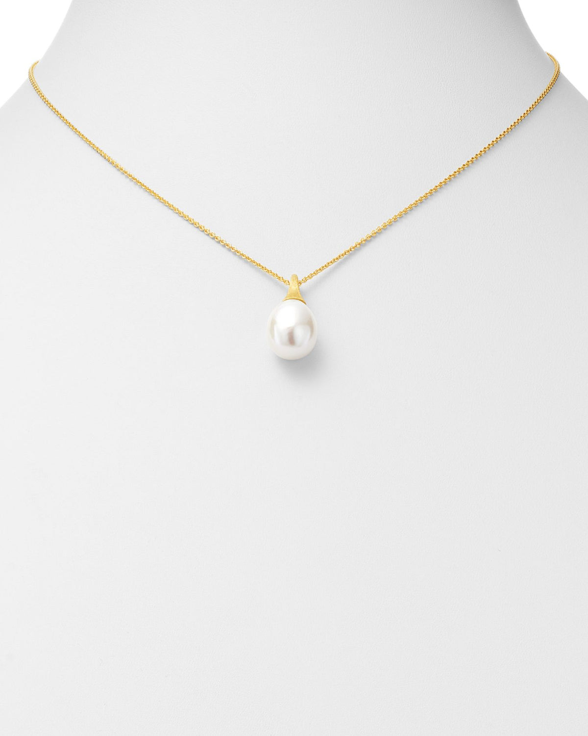 Crafted in 18K yellow gold with a cultured freshwater pearl (11-12mm). Length: 15.5-16.75' with a 0.75'L pendant. Secured with a lobster clasp closure. Made in Italy.