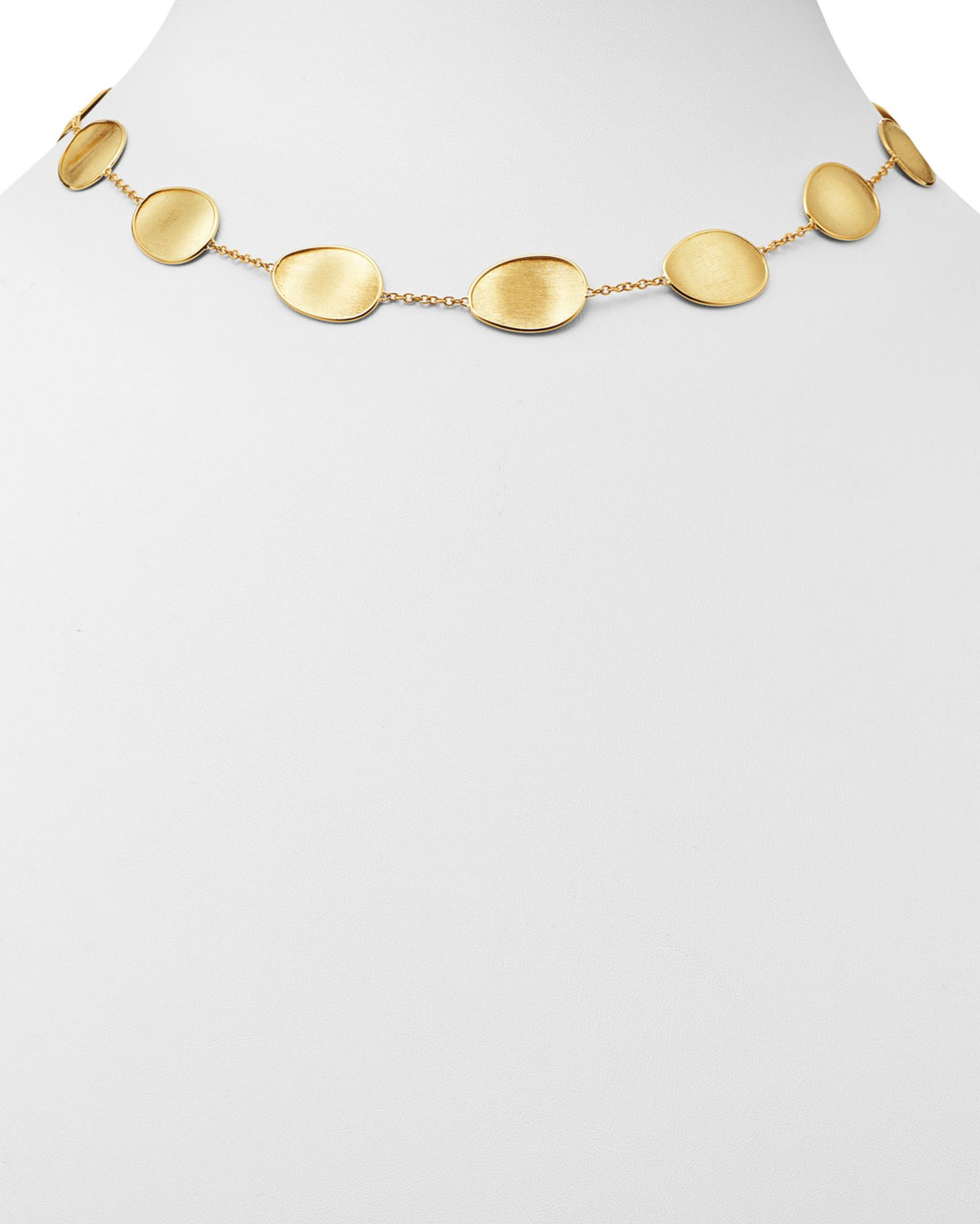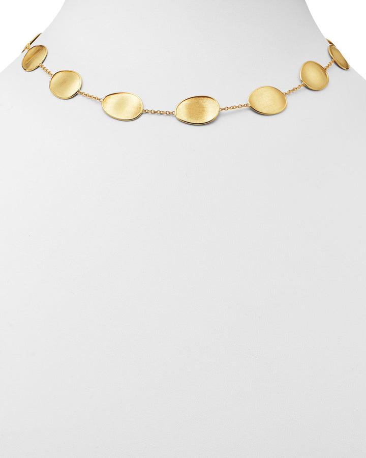 This 18K Yellow Gold Lunaria Station Collar Necklace by Marco Bicego is a refined and versatile design. Featuring hand-engraved gold stations, this collar necklace is an embodiment of understated elegance.