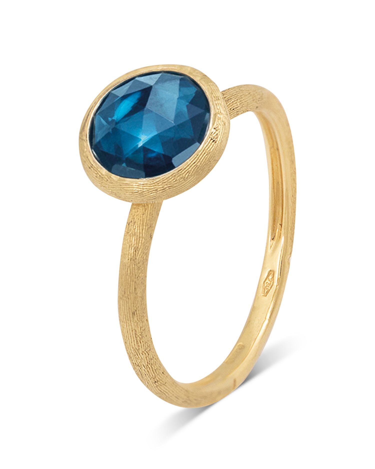 These 18K Yellow Gold Jaipur Color Gemstone Stackable Rings by Marco Bicego are vibrant designs from the Jaipur Color collection. Each ring features a uniquely hued gemstone, inspired by sunsets and ocean depths, making them perfect for stacking or wearing individually.
