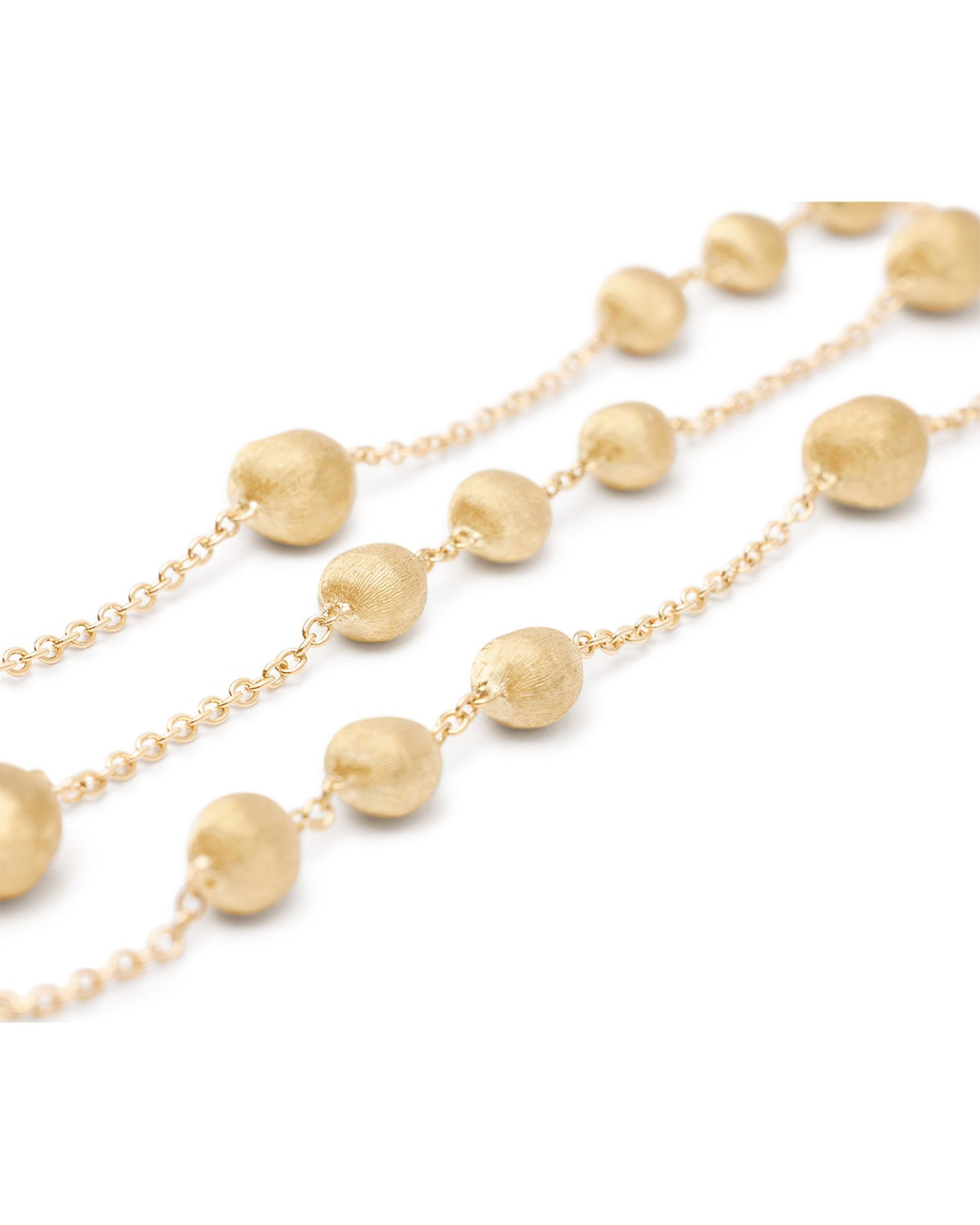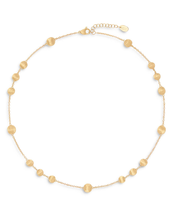 This 18K Yellow Gold Africa Textured Bead Collar Necklace by Marco Bicego is a striking design from the Africa collection. Light-catching textured beads create a radiant glow, offering a bold yet timeless style.