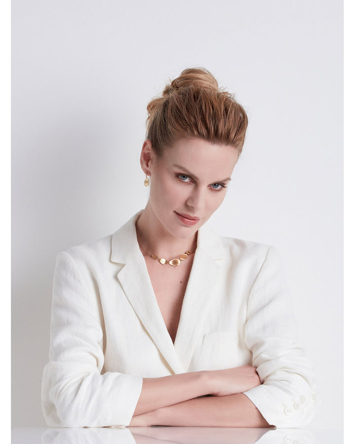 These 18K Yellow Gold Lunaria Small Drop Earrings by Marco Bicego are a timeless addition to the Lunaria collection. Featuring textured gold drops, these dainty earrings bring understated elegance to any look.