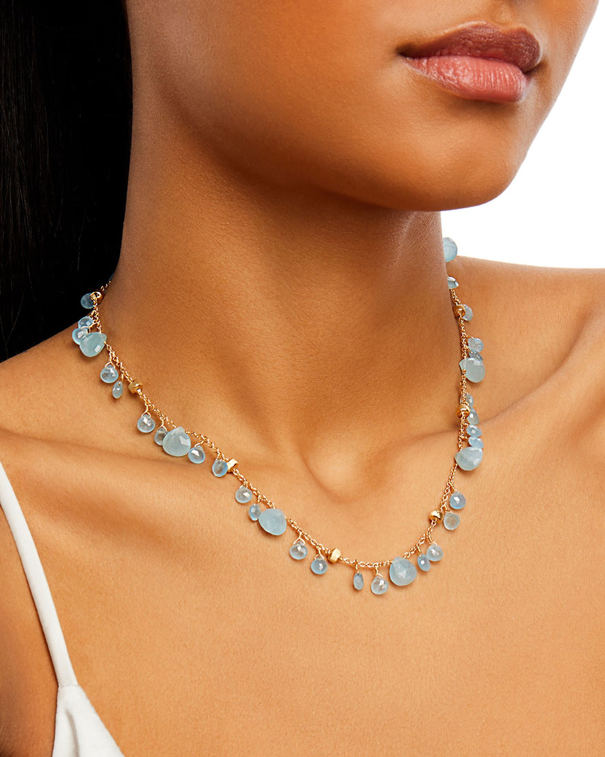 18K Yellow Gold Paradise Aquamarine Dangle Collar Necklace, 16.5' - Exclusive
