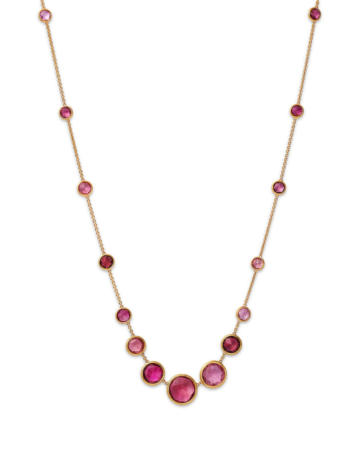 18K Yellow Gold Jaipur Color Pink Tourmaline Bezel Graduated Statement Necklace, 16.5 - 18' - Exclusive