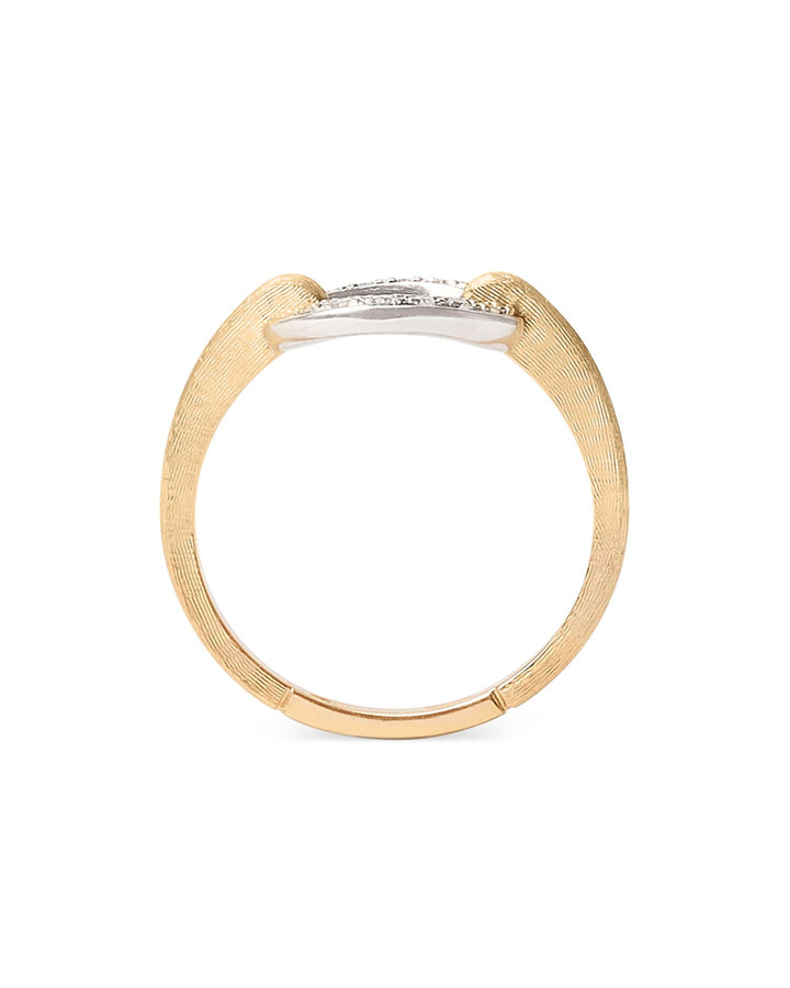 This Jaipur Link Diamond Ring by Marco Bicego offers a modern take on two-tone elegance. From the Jaipur Link collection, a textured yellow gold link pairs beautifully with a sparkling white gold diamond link, creating a bold yet sophisticated statement piece. Ideal for adding a touch of brilliance to your jewelry collection.