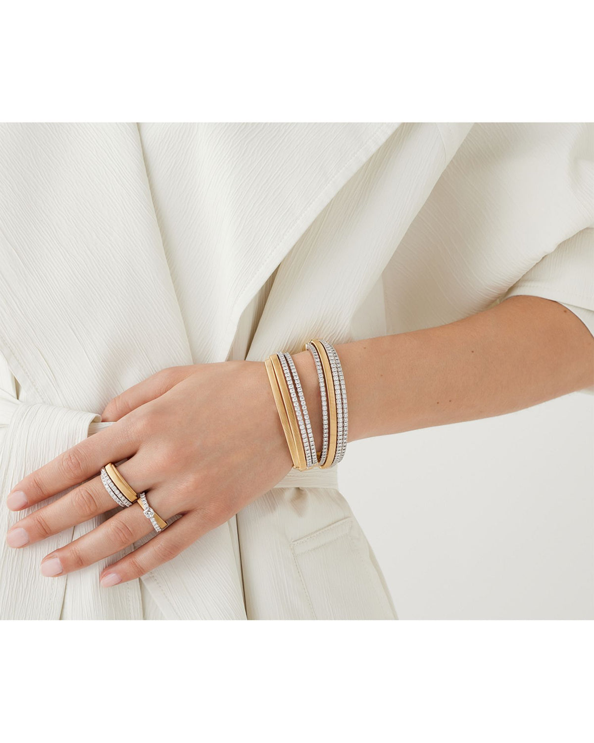 18K Yellow Gold Masai 2 Row Diamond Tennis Statement Cuff