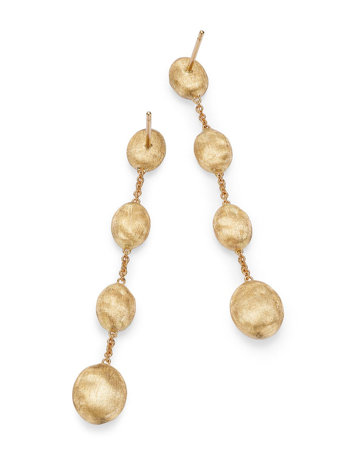 These Siviglia Diamond & Textured Bead Drop Earrings by Marco Bicego are a dramatic blend of elegance and craftsmanship. From the Siviglia collection, textured beads cascade gracefully from diamond clusters, creating a striking yet refined design. Ideal for those seeking a bold accessory that exudes luxury and sophistication.