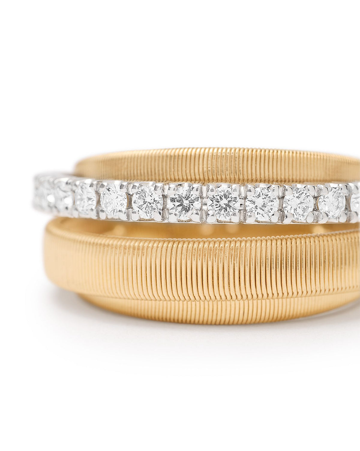 This Masai Diamond Strand Ring by Marco Bicego is a sophisticated blend of texture and sparkle. From the Masai collection, its multi-strand design is adorned with a row of glittering diamonds, creating a timeless piece that effortlessly transitions from day to night.