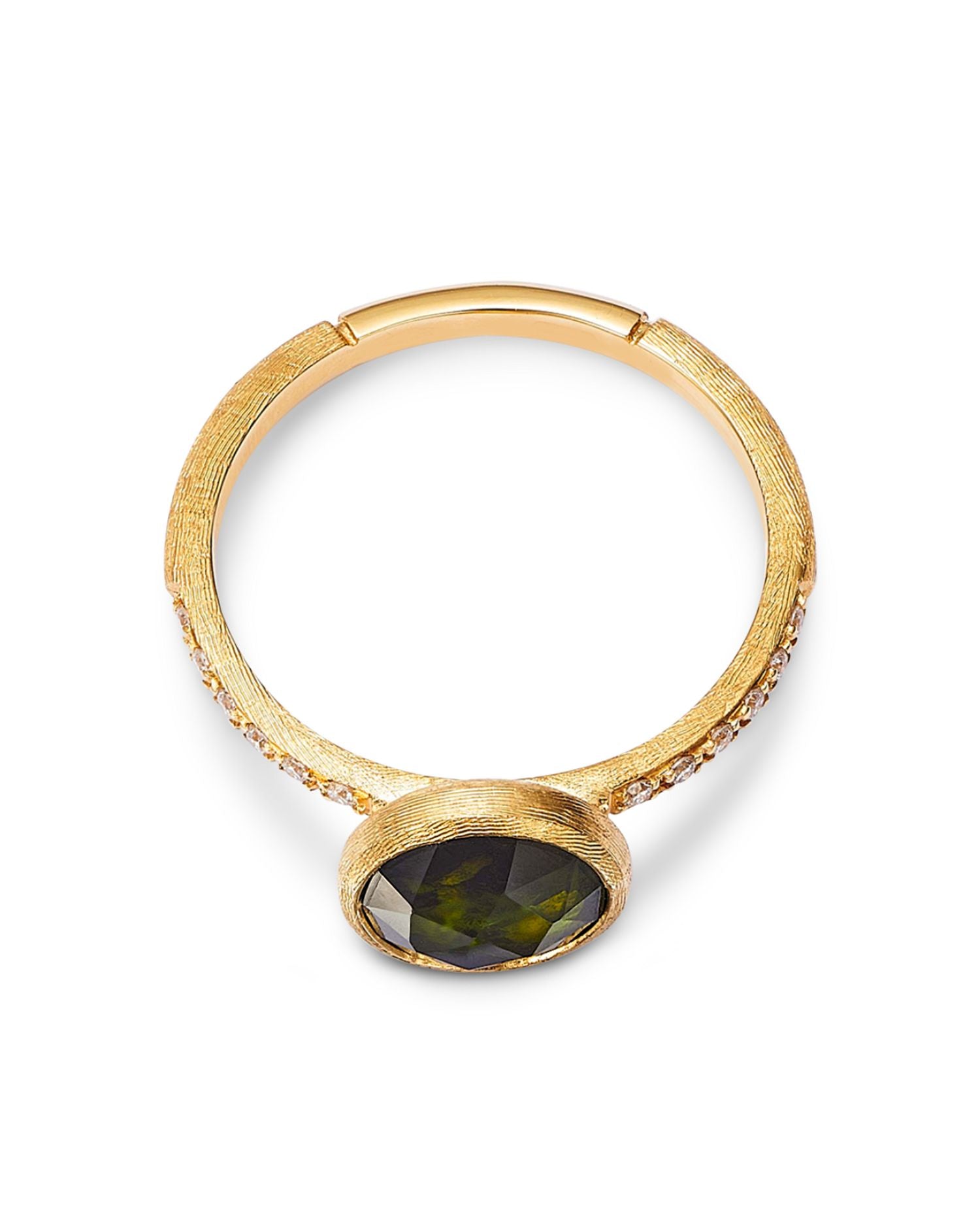 This Jaipur Color Green Tourmaline & Diamond Bezel Ring by Marco Bicego offers vibrant sophistication. From the Jaipur Color collection, the textured yellow gold band is accented with a bezel-set green tourmaline and diamond details, creating a luxurious yet playful design. Perfect for adding a pop of color to your look.