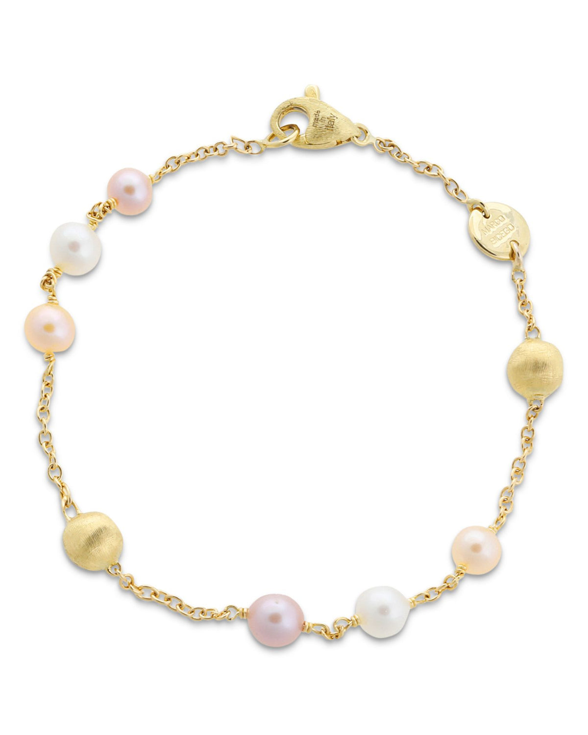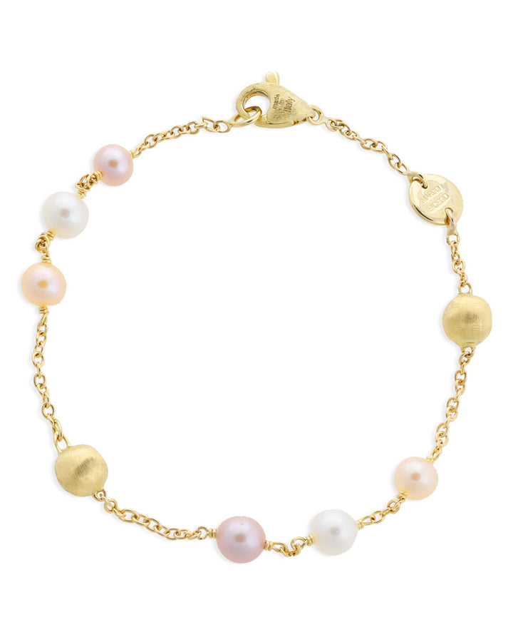 This 18K Yellow Gold Africa Pearl Multicolor Cultured Freshwater Pearl Bracelet by Marco Bicego from the Africa Pearl Collection showcases a vibrant array of colorful cultured freshwater pearls. The elegant design combines timeless sophistication with playful charm, making it a versatile addition to any jewelry collection.