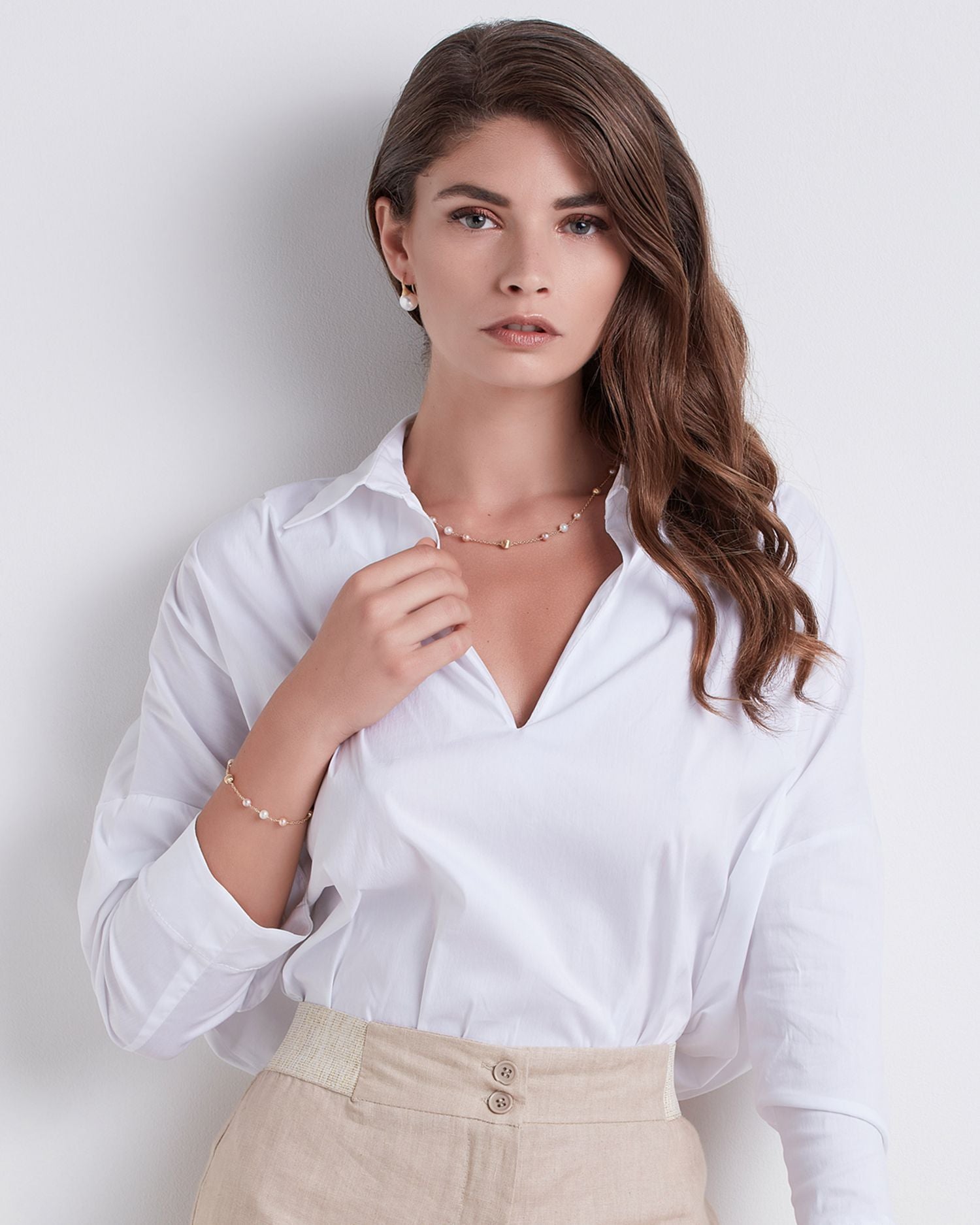 Crafted in 18K yellow gold with 5mm cultured freshwater pearls. Measures 7' in length and secured with a lobster clasp closure. Handcrafted in Italy.