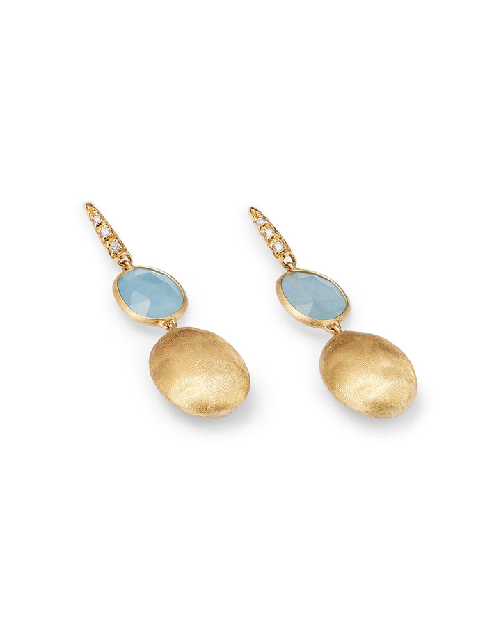 18K Yellow Gold Siviglia Aquamarine & Diamond Textured Bead Drop Earrings