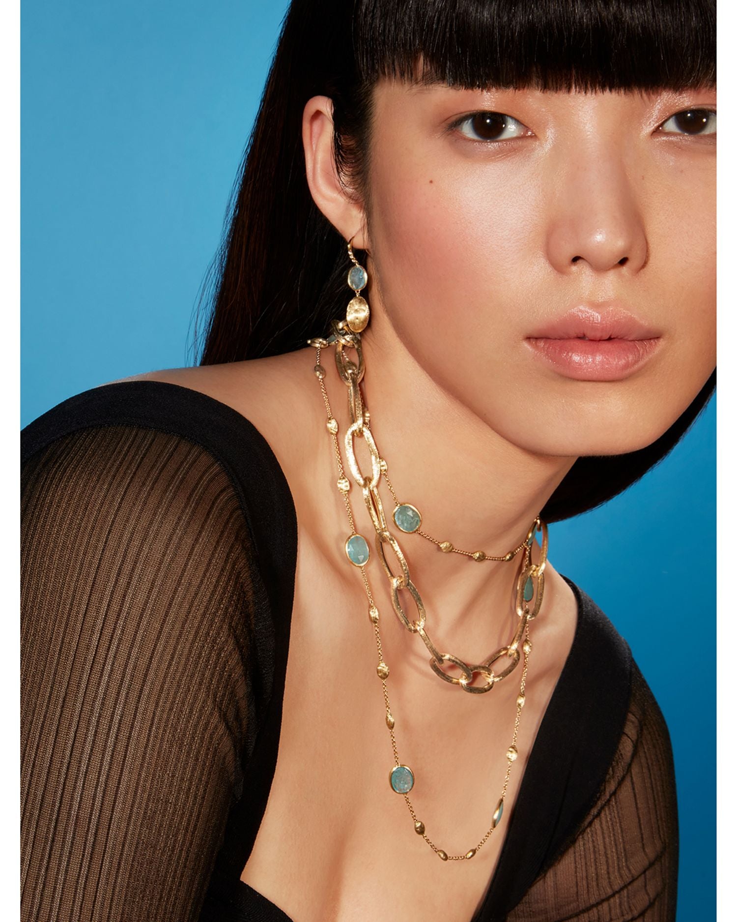 These Siviglia Aquamarine & Diamond Textured Bead Drop Earrings by Marco Bicego offer a chic balance of elegance and sparkle. From the Siviglia collection, the textured gold beads and aquamarine stones are accented by glistening diamonds, making them a versatile accessory for any occasion.