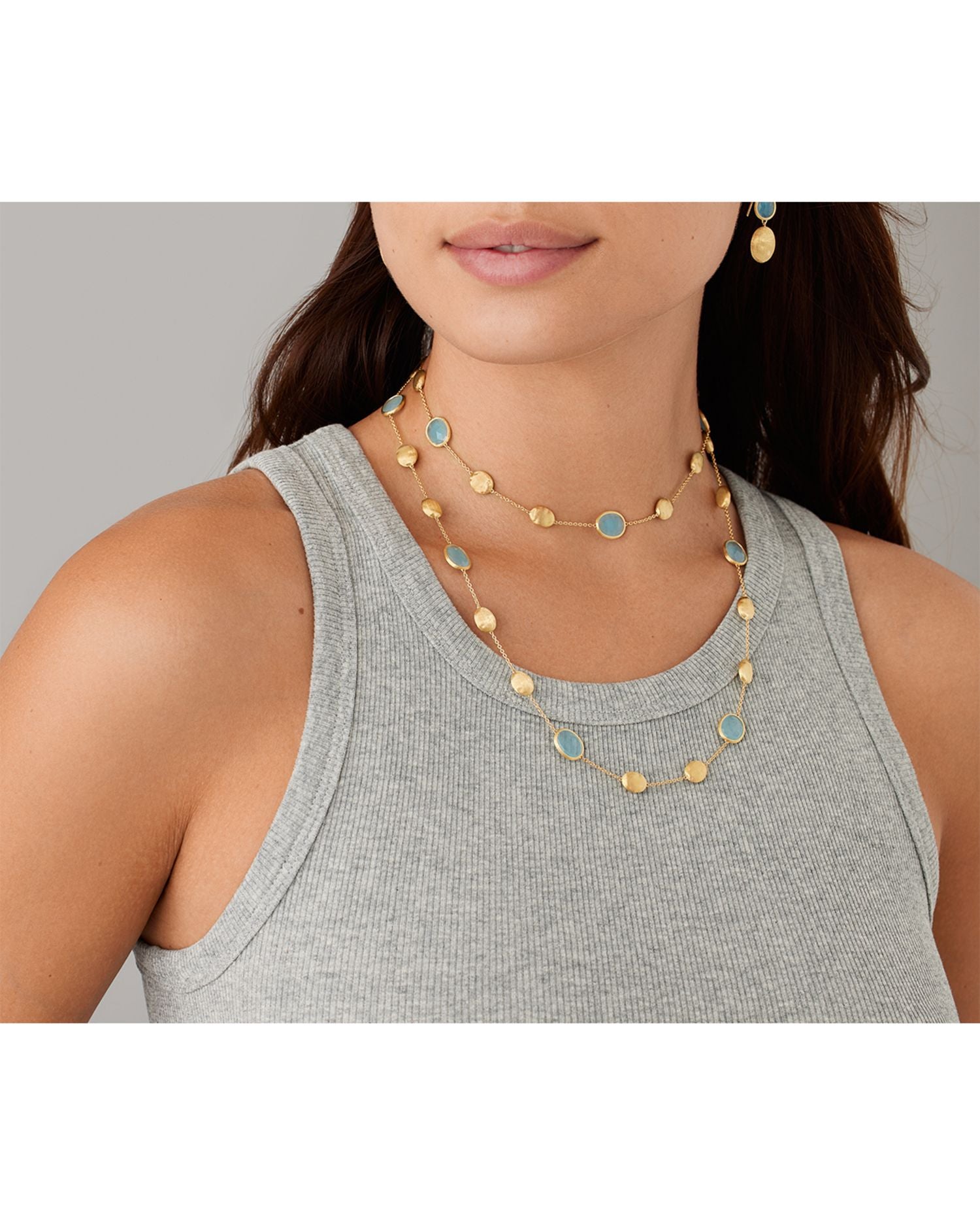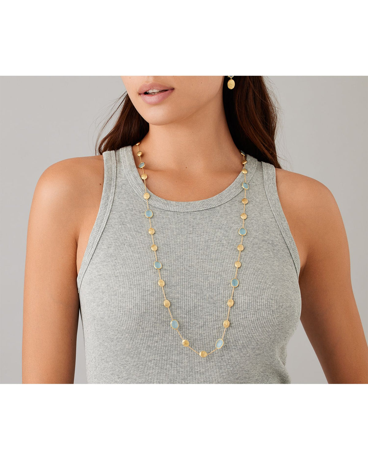 Handcrafted in 18K yellow gold, featuring aquamarine stones. Necklace measures 36" in length. Made in Italy.