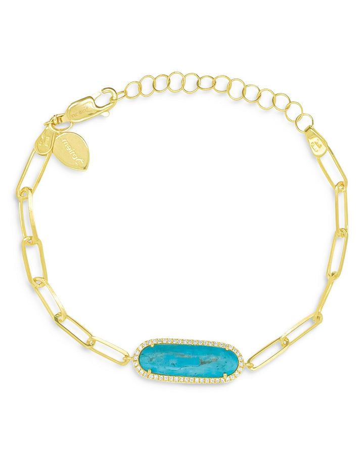 14K Yellow Gold Turquoise & Diamond Paperclip Link Bracelet