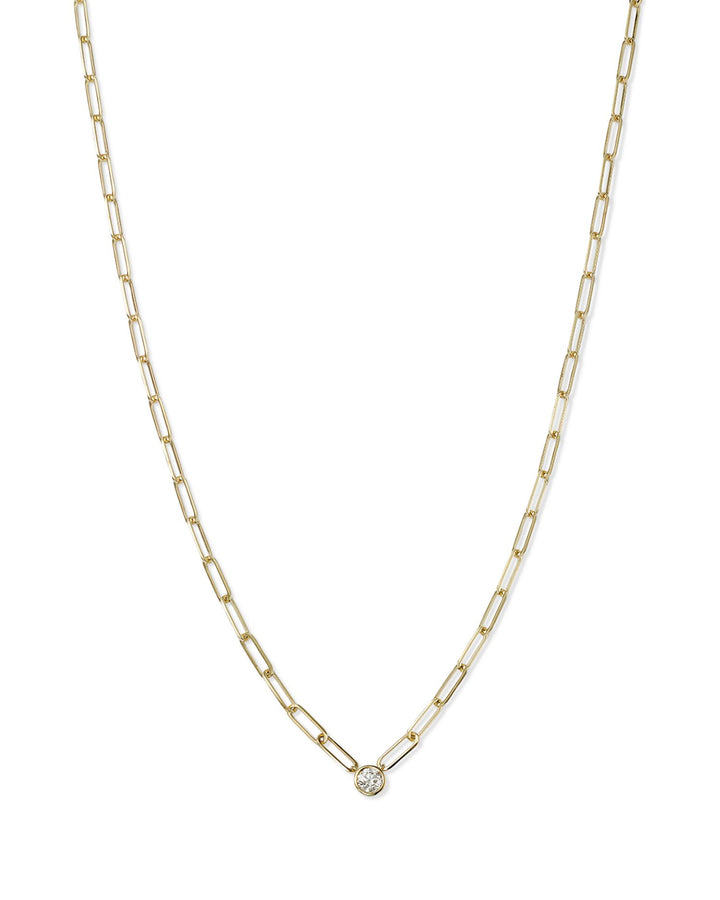This Diamond Chain Necklace by Meira T features a classic gold chain link with a solo diamond pendant, creating a timeless and elegant design. The 14K yellow gold and sparkling diamond offer a touch of luxury to any outfit.
