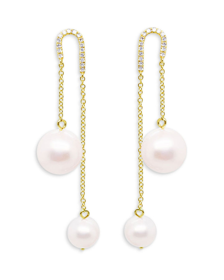 14K Yellow Gold Cultured Freshwater Pearl Chain Drop Threader Earrings
