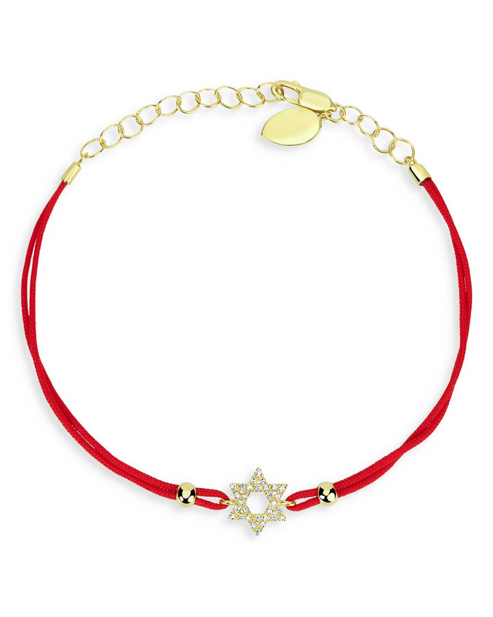 14K Yellow Gold Diamond Star of David Red Cord Bracelet