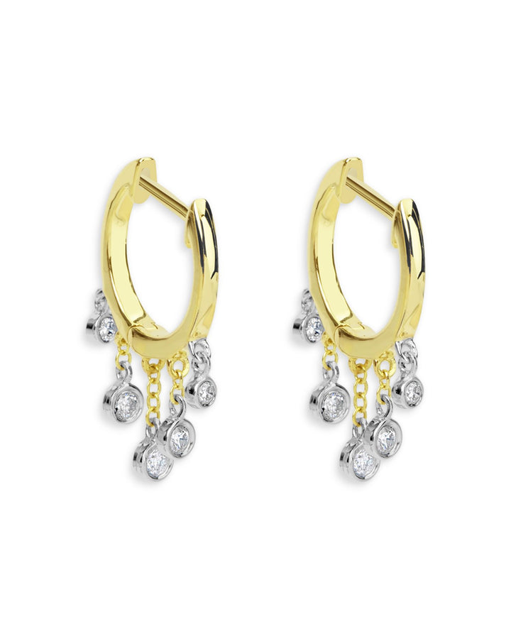 14K White Gold & Yellow Gold Diamond Bezel Dangle Hoop Earrings