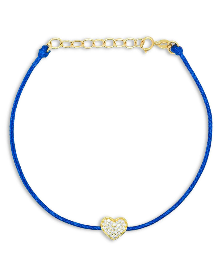 14K Yellow Gold Diamond Heart Blue Silk Cord Bracelet