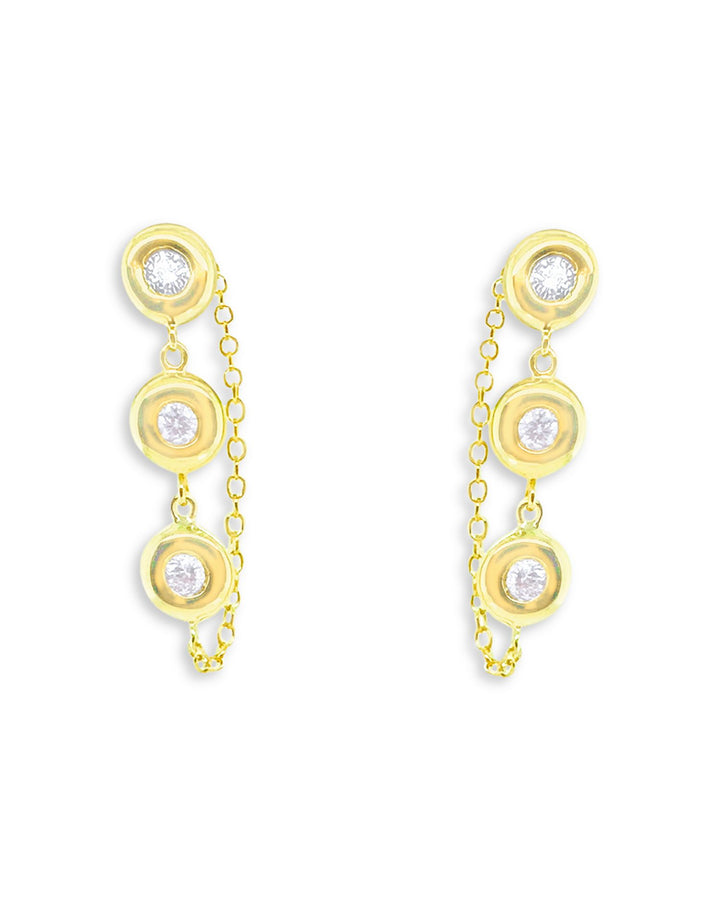 14K Yellow Gold Diamond Bezel Chain Drop Earrings