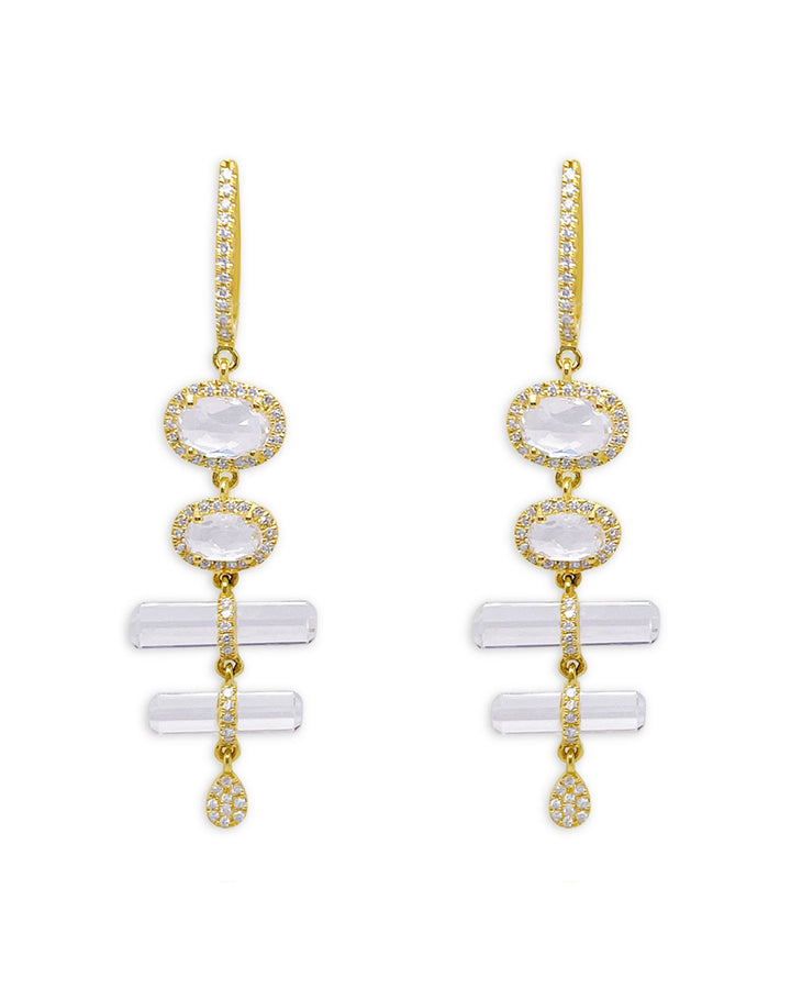 14K Yellow Gold White Topaz & Diamond Halo Dangle Huggie Hoop Earrings