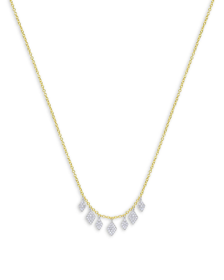Handcrafted in 14K white and yellow gold with diamonds totaling 0.17 ct. t.w. Necklace measures 18'L with a lobster clasp closure.