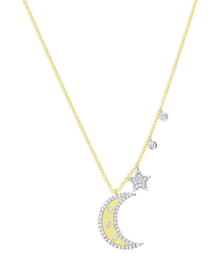14K White & Yellow Gold Diamond Moon & Stars Multi Charm Pendant Necklace, 18'